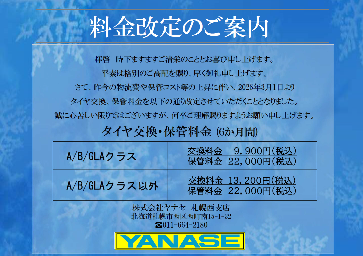 - ※月曜日が祝日の場合は営業。翌火曜日を定休日といたします。