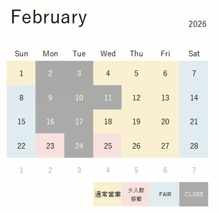- ※臨時休業日、臨時営業日がある場合がございます。 詳しくは直接お問い合わせください。