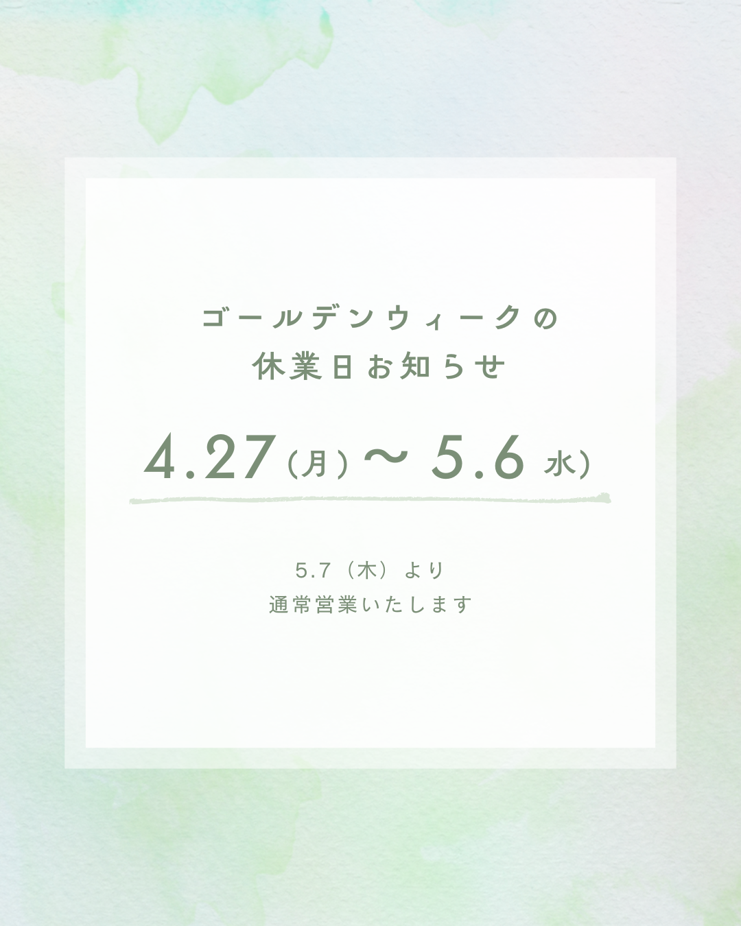【GW休業のお知らせ】