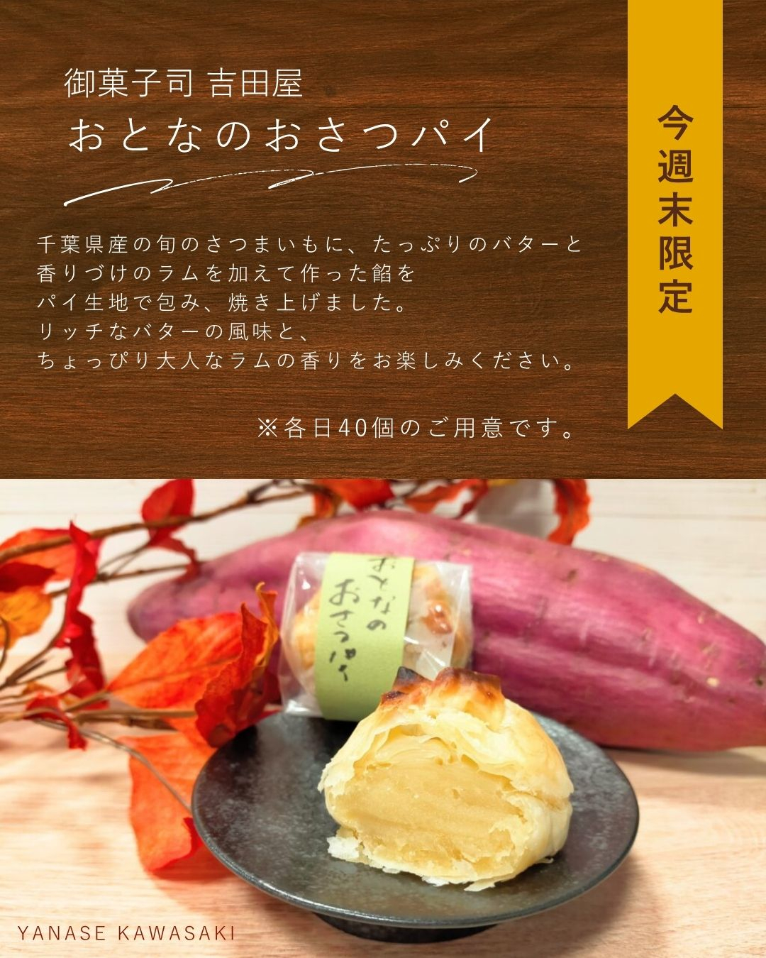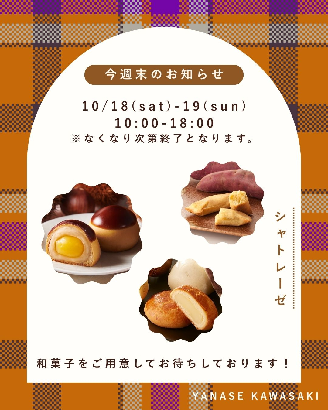 今回は川崎市幸区というとても近所の老舗和菓子屋さん『御菓子司 吉田屋』さんの商品をご用意しております。数に限りがありなくなり次第終了となりますが、皆さまのご来場を心よりお待ちしております!